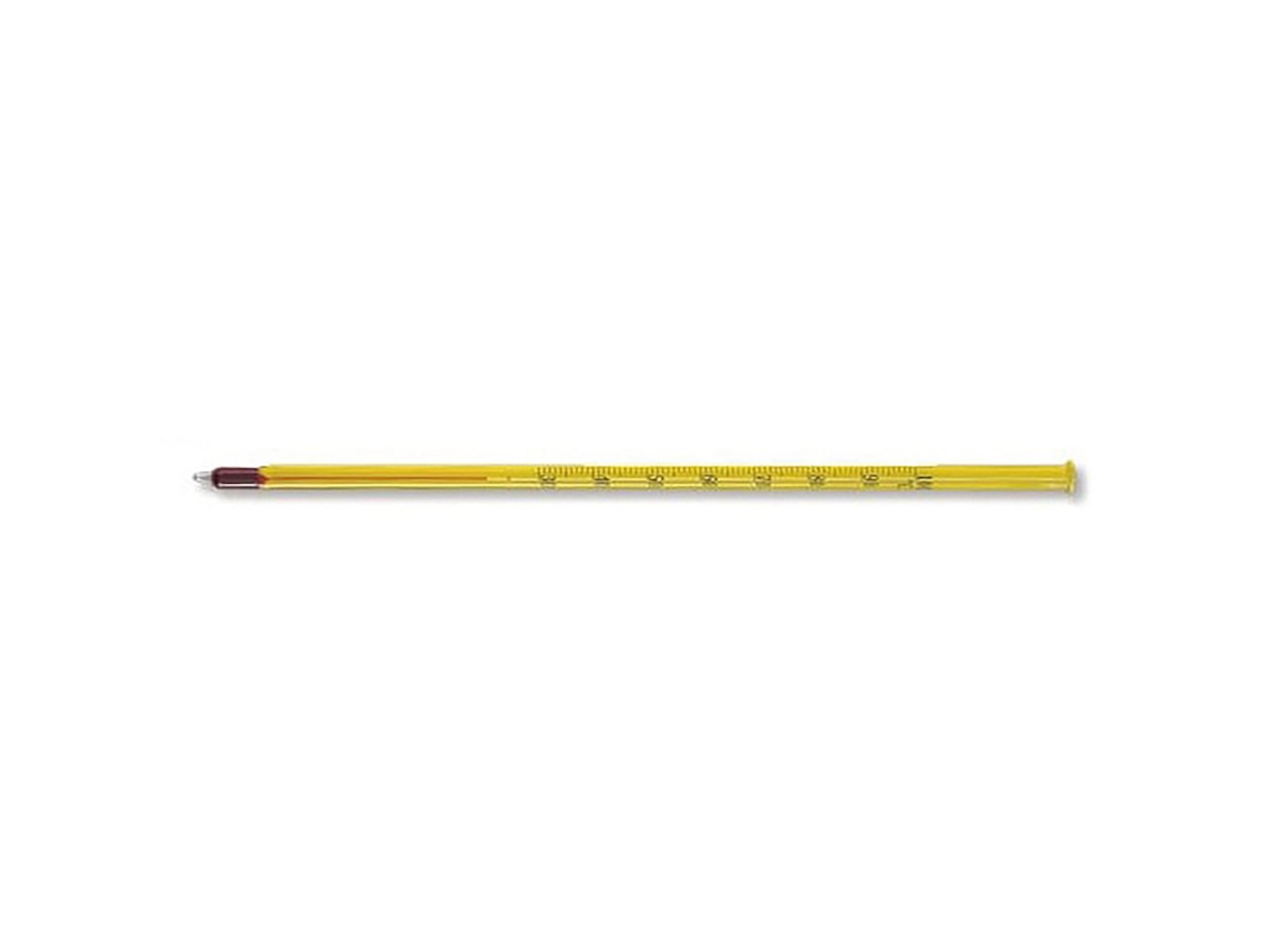 The thermometer is made of durable glass with a clear measurement scale covering the temperature range from +30°C to +100°C. With a length of 265 mm and a width of just 10 mm, it can easily be used even in smaller containers. Its lightweight design of 20 grams makes it comfortable to work with, even during extended cooking sessions.