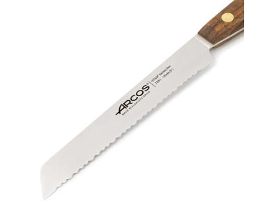 The Arcos Nórdika tomato knife, featuring a 13 cm blade, is specially designed to cut tomatoes, fruits, and other soft produce with tough skins without crushing them. Its serrated blade made from NITRUM® stainless steel, combined with an elegant Ovengkol wood handle, offers both functionality and aesthetics in your kitchen.