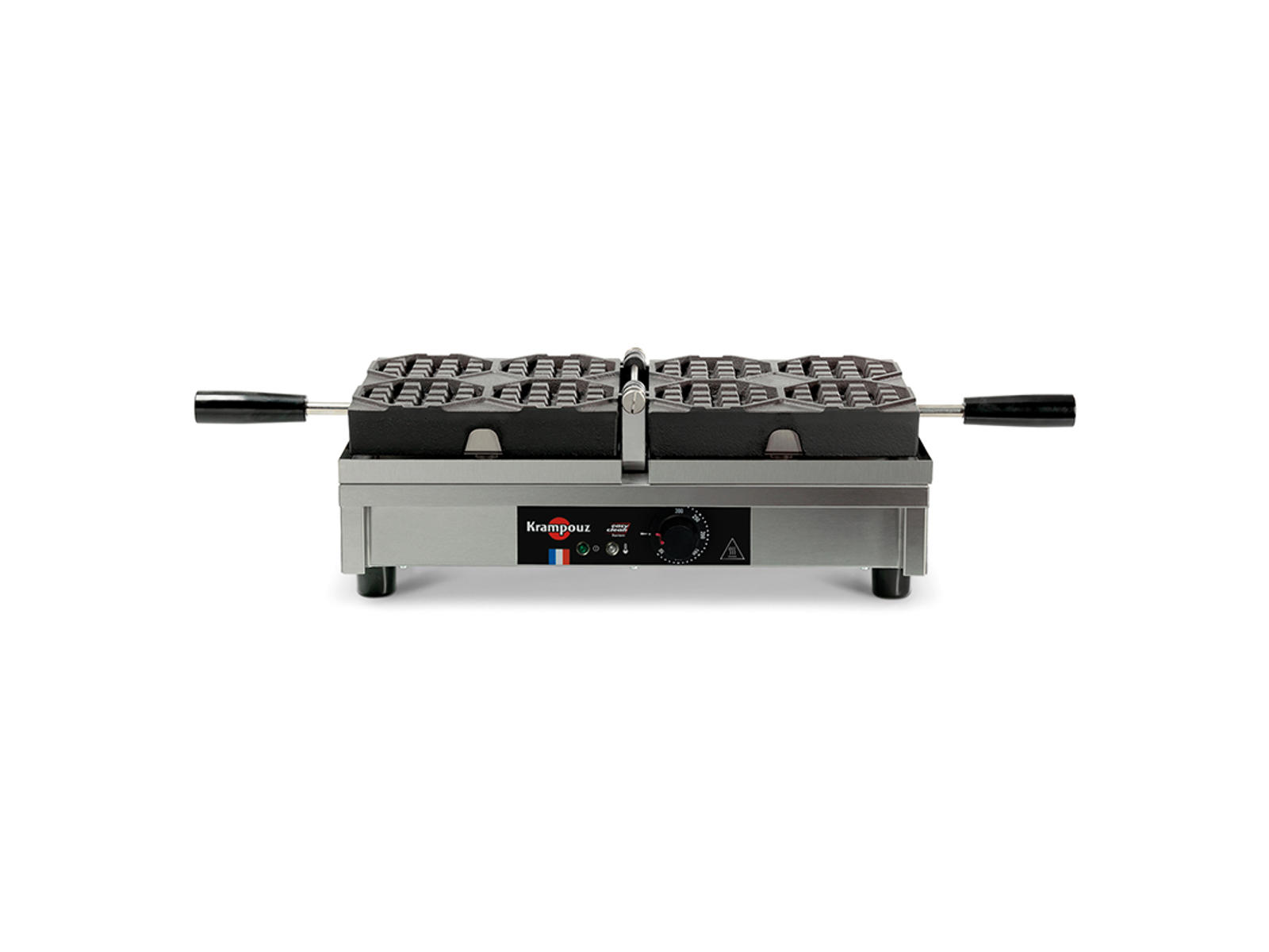 This professional waffle maker from Krampouz allows you to bake four mini waffles on a stick simultaneously. With a maximum temperature of 280°C and an Easy Clean system that lets you easily remove and wash the plates in the dishwasher, this waffle maker is designed for efficient operation in professional kitchens. It is ideal for making both Liège and Brussels waffles on a stick.