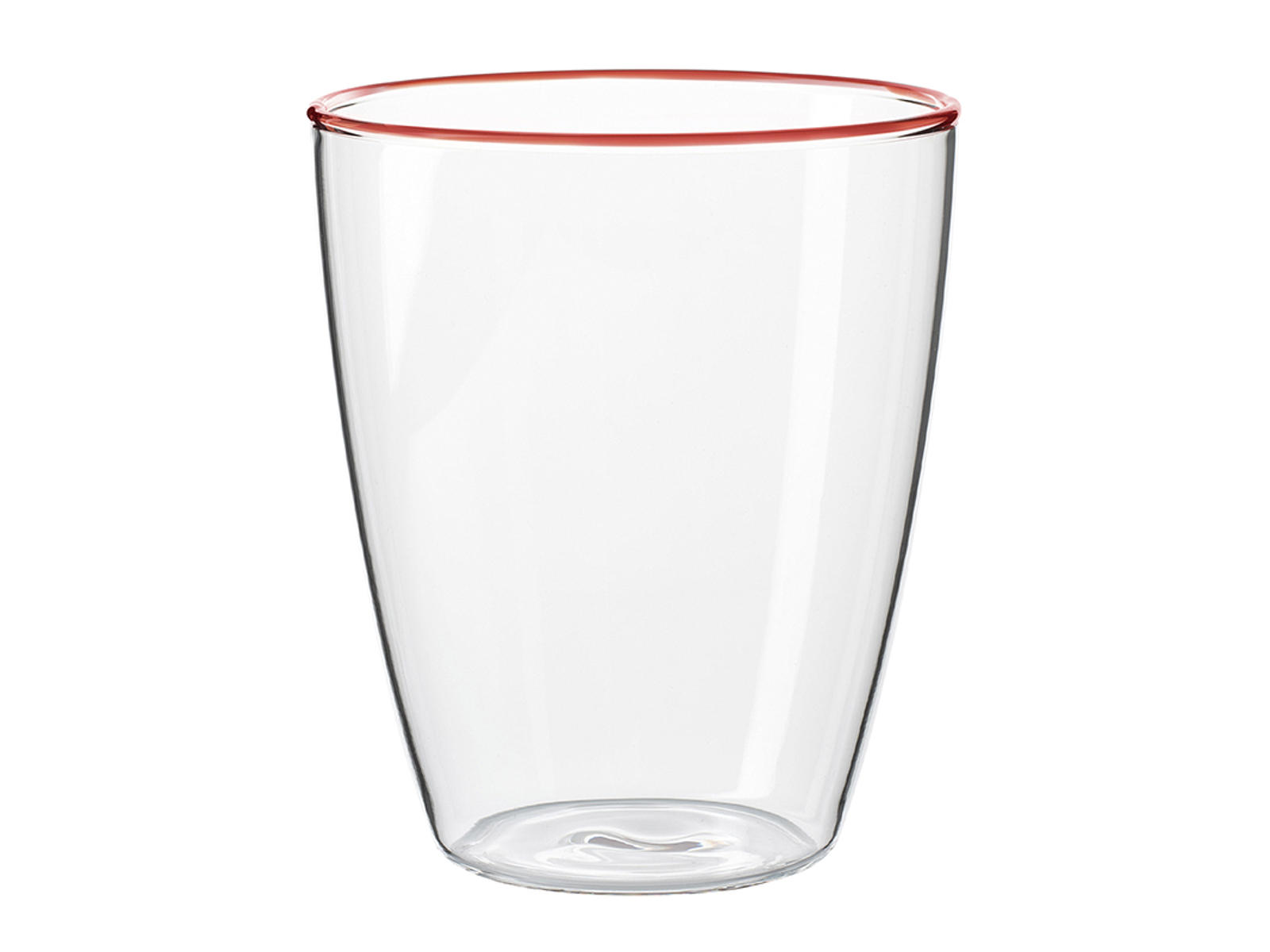 The handcrafted red rim makes each glass unique, with small natural variations that reflect the craftsmanship behind it. With a capacity of 29 cl, the glass is suitable for everything from water and juice to cocktails. Weighing only 83 grams, it is comfortable to hold, even for smaller hands, without compromising stability.