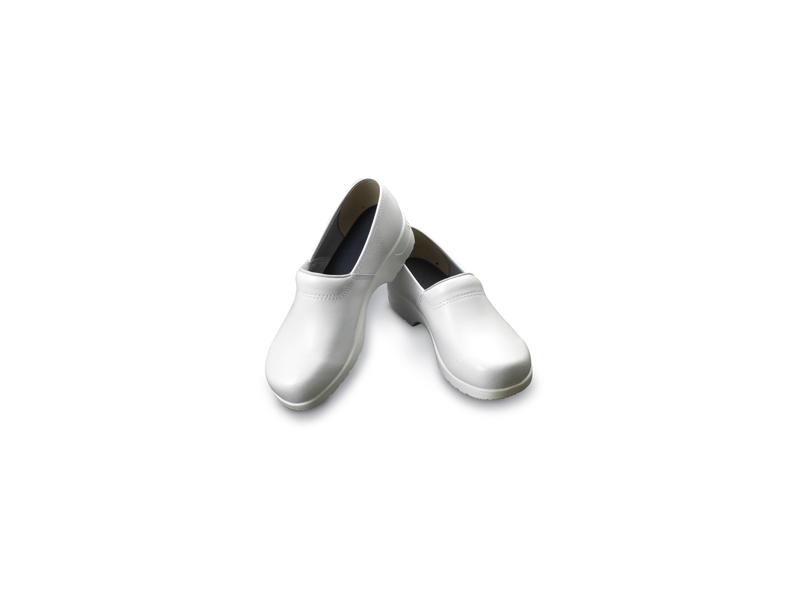 The Euro-Dan Flex 480-01 is a professional clog made from white leather, designed for professionals who spend a lot of time standing and walking during their workday. With an extra-wide fit (width 13), a stabilizing heel cap, and a removable insole, this clog provides both comfort and functionality for healthcare workers, kitchen staff, and other professionals with high footwear demands.