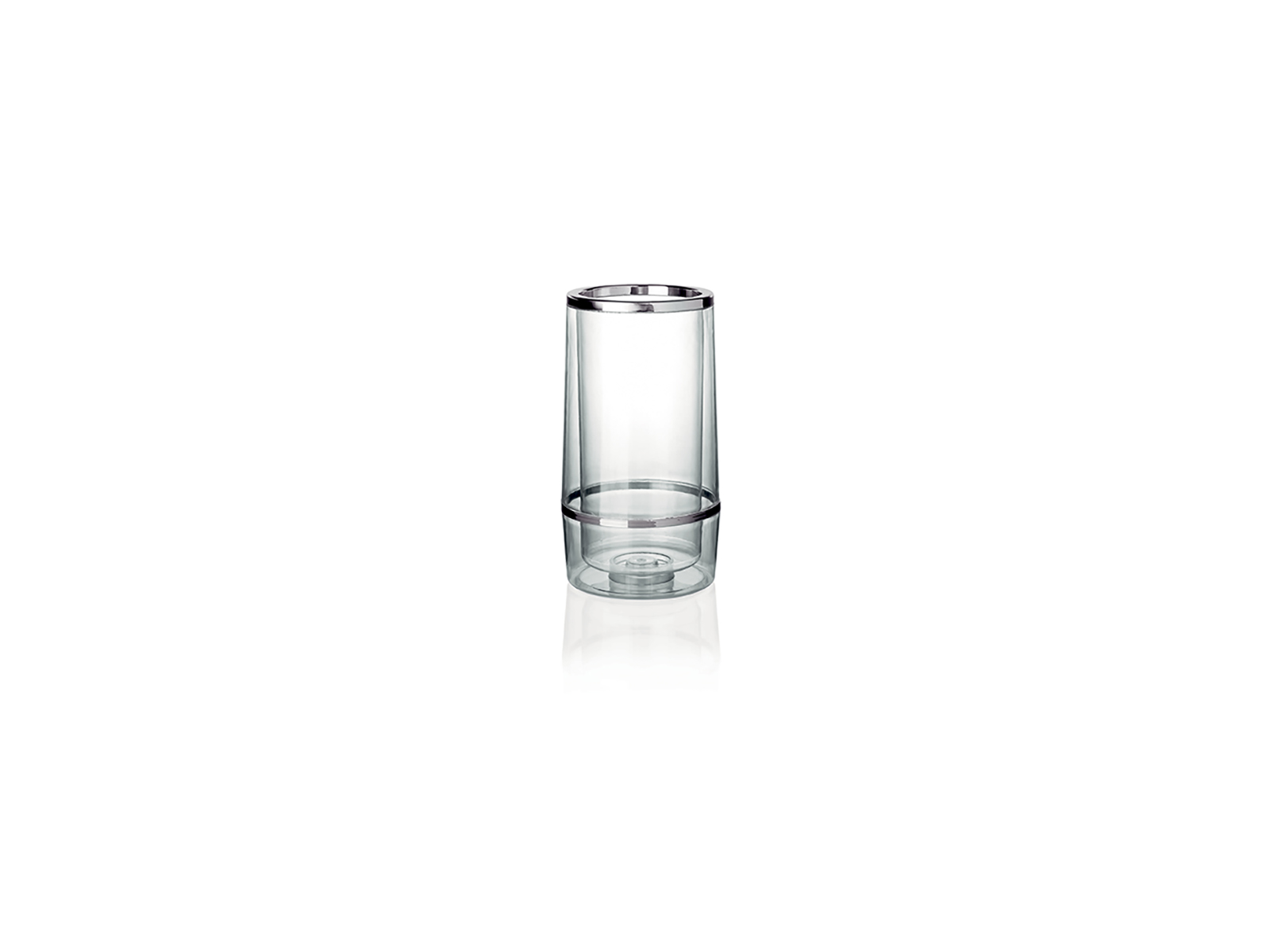The combination of clear acrylic and a stainless steel rim gives the cooler a timeless design that fits both modern and classic interiors. The transparent acrylic allows the bottle's label to be visible, which is especially appreciated when serving special vintages or exclusive wines. The stainless steel rim adds an exclusive touch and enhances durability.