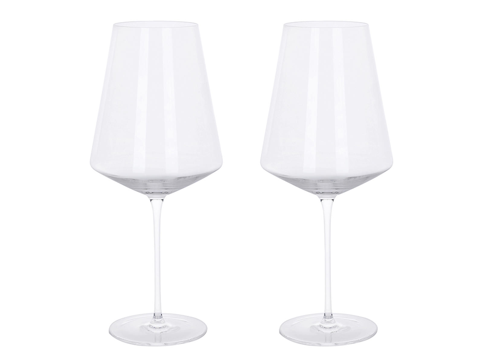 These Bordeaux glasses are part of the exclusive Ultima series, created in collaboration with renowned designer Karim Rashid. The angular, modern design gives the glasses a timeless expression that stands out on any beautifully set table. Each glass is hand-blown from lead-free crystal, providing a light and elegant feel when held. This combination of craftsmanship and material choice ensures both premium visual clarity and durability that surpasses ordinary wine glasses.