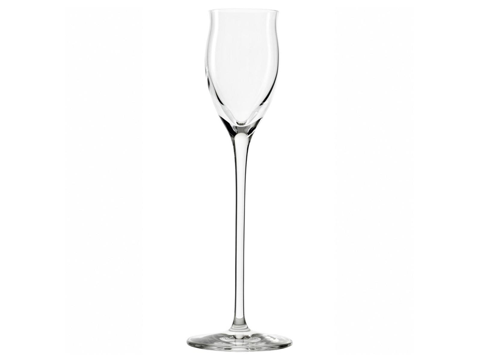 This specially designed glass from Stölzle's Quatrophil series is crafted specifically for enjoying grappa and other fine spirits. With a generous capacity of 6.5 cl and a sleek, elegant shape, the glass enhances the drink's aromas and flavors to perfection. The long, slender stem provides a secure grip and prevents unwanted warming of the contents.